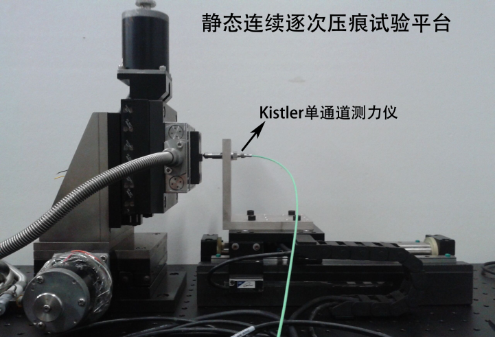 靜態(tài)連續(xù)逐次壓痕試驗平臺,該試驗平臺包括:直線電機、Kistler 9203單通道測力儀等設(shè)備。其驅(qū)動通過Renishaw光柵尺閉環(huán)系統(tǒng)控制,重復(fù)定位精度可達0.5μm,其Kistler單通道測力系統(tǒng)的采樣頻率可達27kHz。該試驗平臺可針對材料進行逐次連續(xù)的壓痕試驗,從而研究其靜態(tài)力學性能。